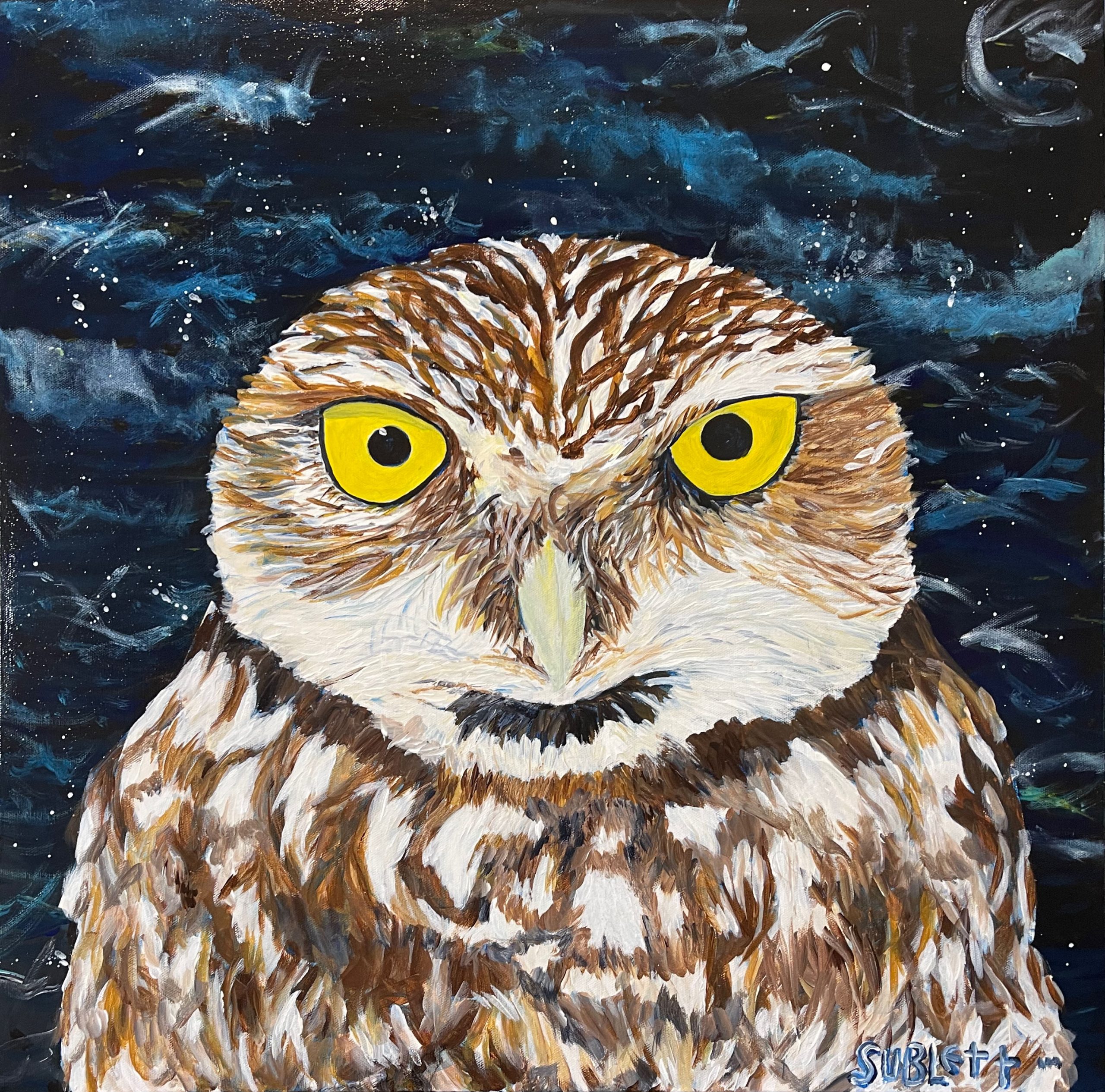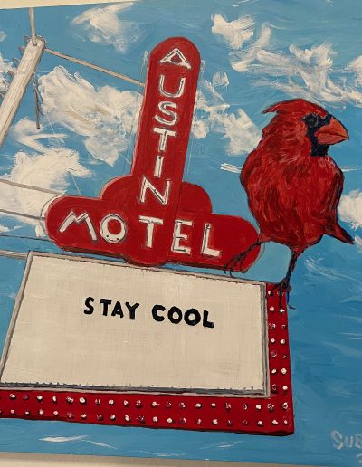 UPDATES: Jesse’s work will be featured in the ABC group show at Moore Alternative Space Gallery Nov.8-Dec. 31, kicking off the 23rd annual Austin Studio Tour 11/8-9/25. The Art Breakfast Club (ABC) consists of 10 talented and varied Austin artists who meet for breakfast every week to support each other with encouragement, feedback and information. Check jessesublett.visualart on Instagram for updates & more info. Also, if you love Jesse’s art but you’re on a budget, remember that many of these pictures are available as limited edition signed giclée prints. Prices start at $45. Shipping is available. Note: 16×12 prints of “Texas Chili Parlor Grackles (The Wait List)” and “Graczilla” are popular gift items. Shipping is available.